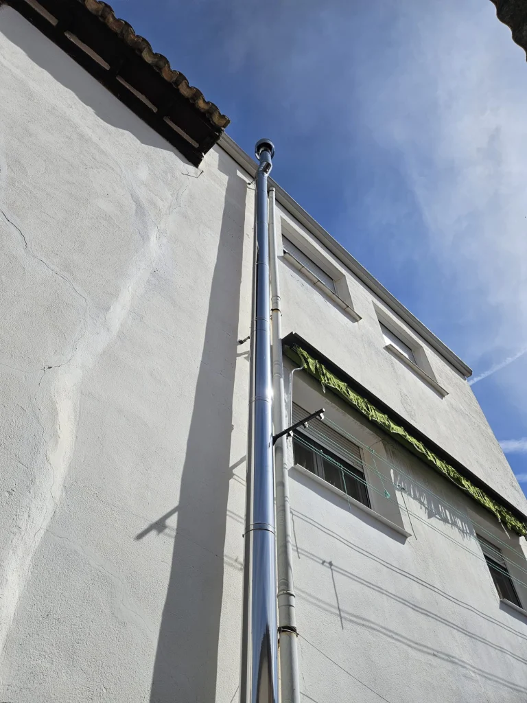 En un edificio residencial de Jadraque, instalamos una chimenea KW de 8 metros para una caldera de gasoil, combinando eficiencia y seguridad en una solución compacta y perfectamente adaptada al entorno doméstico.