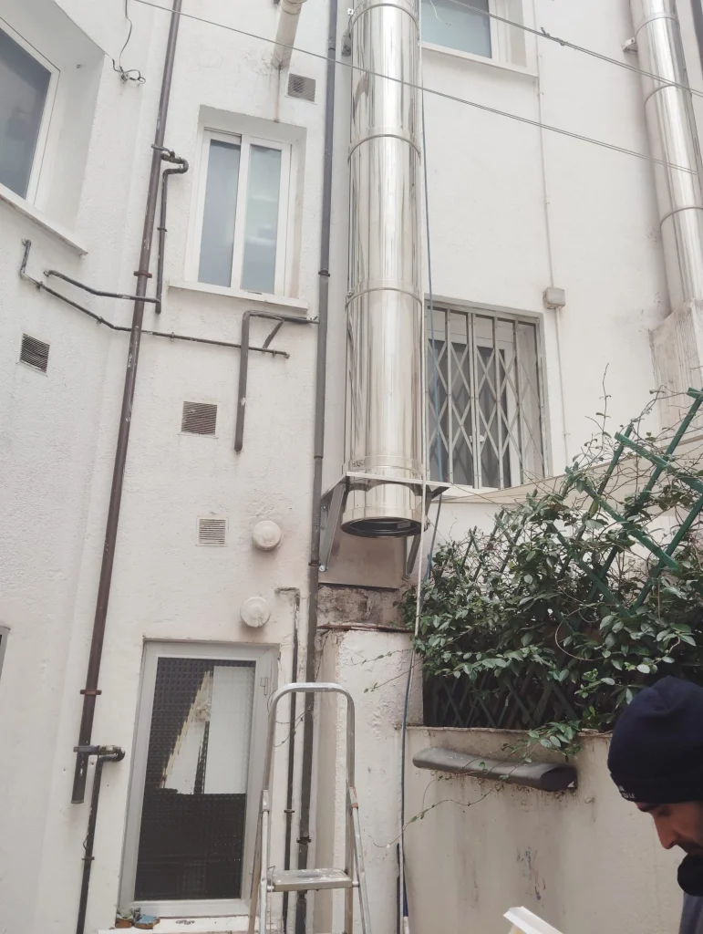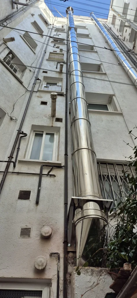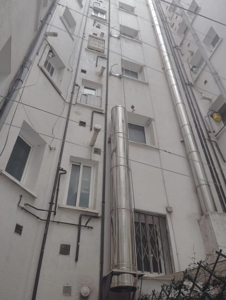 En uno de los talleres de Yamaha de Madrid instalamos un sistema de salida de humos para la calefacción, diseñado para garantizar seguridad y eficiencia a lo largo de sus 23 metros de altura. Una solución fiable y adaptada a las necesidades del entorno industrial.